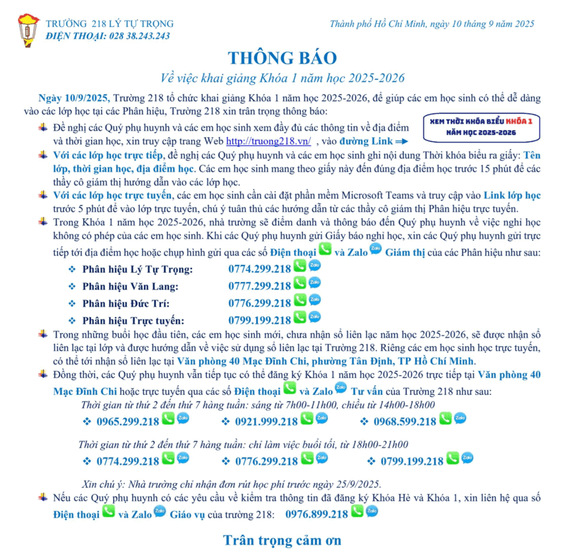 Chào mừng đến trường 218 Lý Tự Trọng