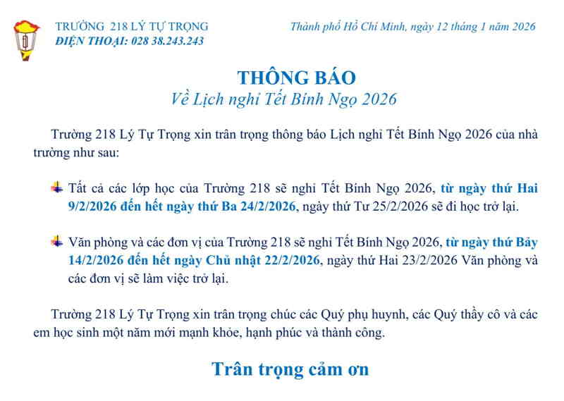 THÔNG BÁO LICH NGHỈ TẾT DƯƠNG LỊCH NĂM 2026